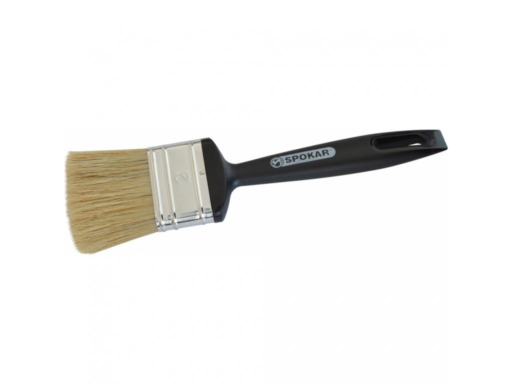 Plastové držadlo pootočené vůči hlavě štětce pro lepší uchopení, zakončení držadla ve formě špachtle - stěrky, čistá štětina. Vhodné pro všechny druhy nátěrových hmot. Vynikající příjem barvy, naprosto rovnoměrný přenos barvy na povrch. Dlouhá životnost, snadné čištění. Skvělý výsledný povrch.