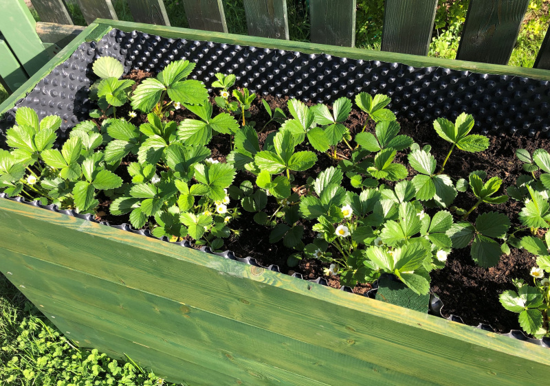 - V dalším kroku vnitřek vysokého záhonu obložte nopovou fólií, aby dřevo tolik netrpělo a bylo od zeminy izolováno. Výrazně tím zvýšíte životnost vysokého záhonu.