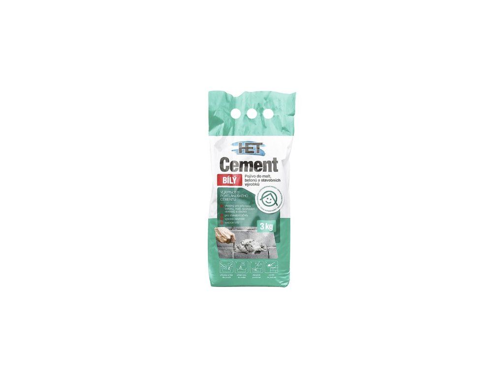 Het cement bílý je hydraulické pojivo pro stavební účely, včetně spárování obkladů a dlažeb. Je používán při výrobě betonových prvků prostých i armovaných, exkluzivních prefabrikovaných stavebních dílů, terasových dlažeb, bílých omítkových směsí, barevných cementů apod.
