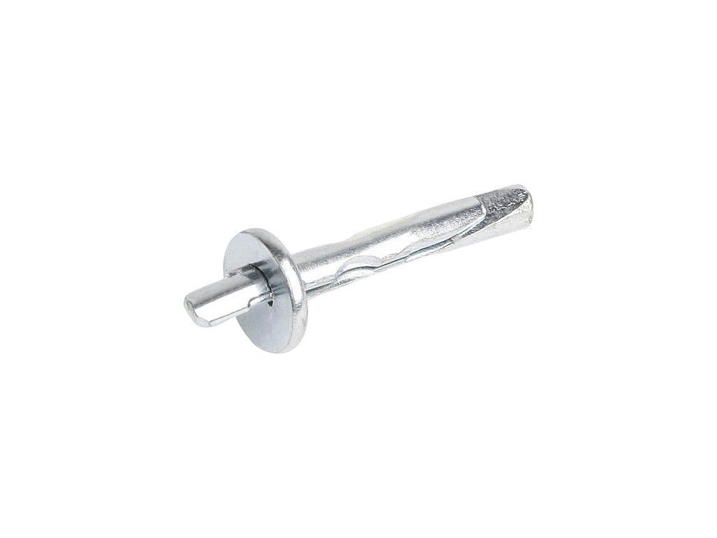 Kovová klínová natloukací hmoždinka pro kotvení sádrokartonových konstrukcí do betonových stropů. Z protipožárního hlediska se nesmí kotvit konstrukce do stropů pomocí hmoždinek s plastovým tělem z důvodu vyhoření plastové hmoždinky a zborcení sádrokartonové konstrukce.
