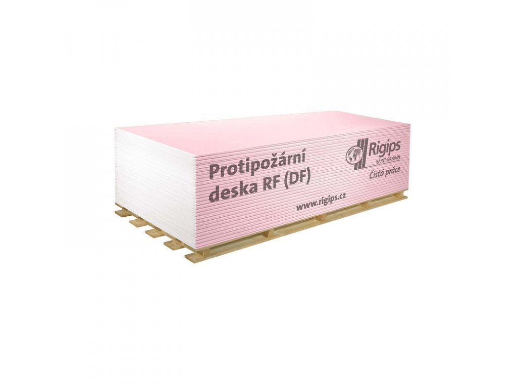 Protipožární deska RF (DF) je sádrokartonová deska s kontrolovanou objemovou hmotností určená do konstrukcí se zvýšenými požadavky na požární odolnost.