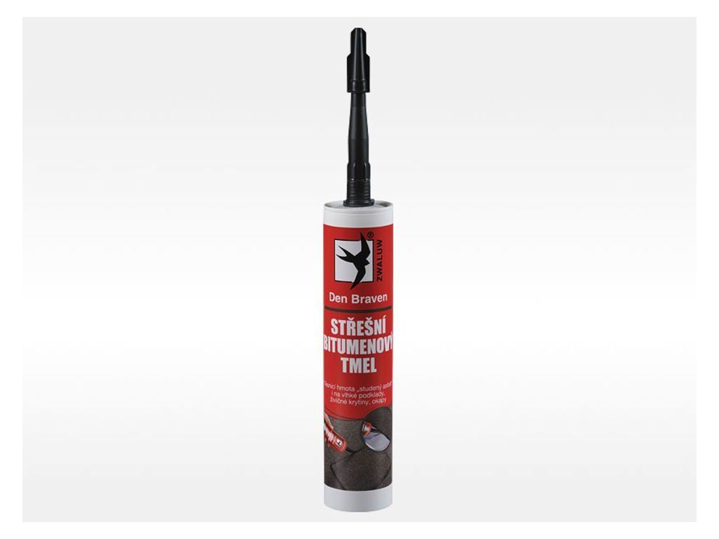 Pro drobné opravy a tmelení živičných střešních krytin (šindelů) za studena, utěsňování zakončovacích plechů, oplechování komínů, atik. Dotmelování parapetových a štítových krytin, průchodů okapových svodů a přechodů střech. Nouzové opravy střech, okapů, tzv. přeplátováním. Podtmelování hřebenových krytin.
